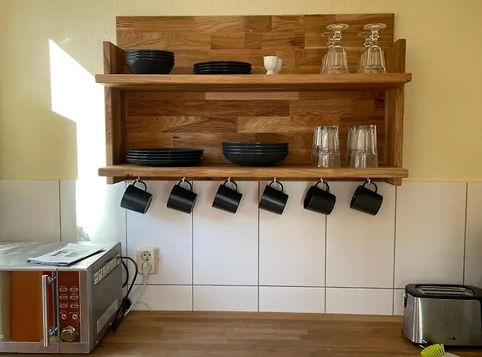 المطبخ مزود ايضاً بـالمايكرويف والغلاية الكهربائية والآنية الزجاجية.أقرب مطار هو برلين تيغيل يبعد 70 كم عن الشقة.